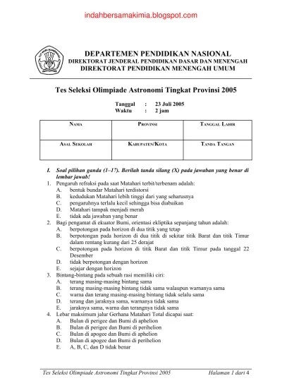 Dibawah ini adalah download soal jawaban pembahasan osn sma astronomi 2018 tingkat kabupaten, provinsi dan nasional. Soal seleksi calon tim olimpiade sains tingkat kabupaten/kota 2015 tingkat wilayah kota administratif jakarta selatan bidang astronomi hari / tanggal : Sudah bukan rahasia lagi berlatih soal . Solusi soal olimpiade tingkat provinsi 2010. Mohon saya dikontak jika ada ya.