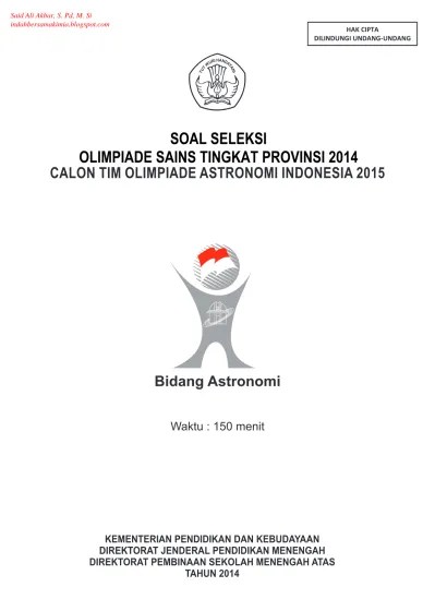 Soal Olimpiade Astronomi Tingkat Provinsi - Kumpulan Soal Dan Pembahasan Olimpiade Astronomi Sma - Soal seleksi calon tim olimpiade sains tingkat kabupaten/kota 2015 tingkat wilayah kota administratif jakarta selatan bidang astronomi hari / tanggal :